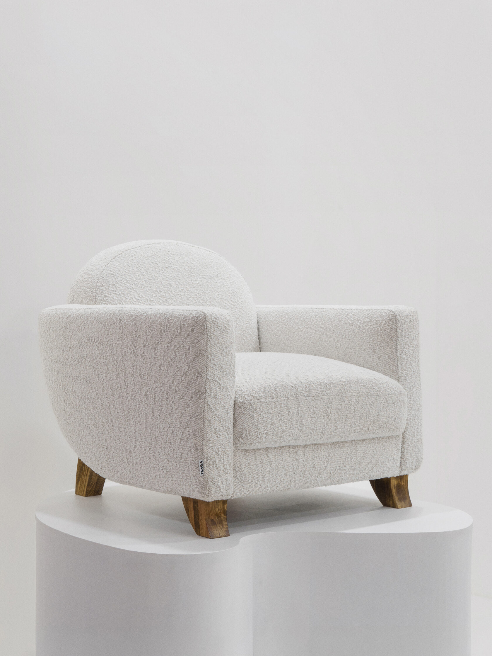Заря — камерное кресло-«персонаж»: спереди дисциплина и простая геометрия, сзади — плавный радиус спинки и скульптурные ножки-«клыки», ради которых хочется обойти предмет по кругу.